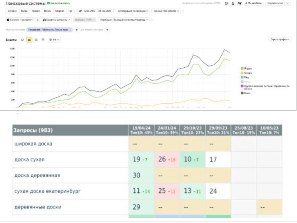 Далее у клиента появился запрос по вывод поисковых запросов по основным услугам в ТОП10 и увеличение трафика